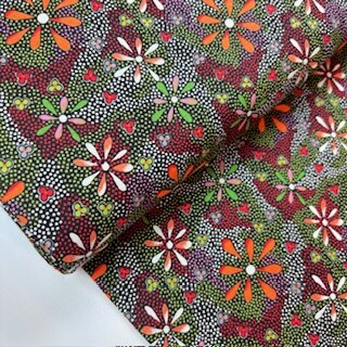 Gut fallende, hochwertige Baumwollstoffe mit traditionellen australischen Aborigini-Mustern. Sie eignen sich fŸr Kleidung aller Art, Accessoires, Innendekoration und Patchwork.