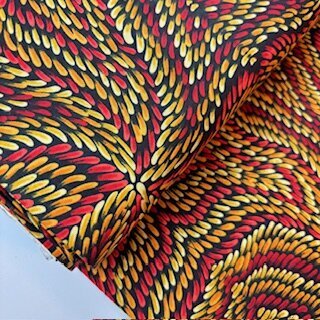 Gut fallende, hochwertige Baumwollstoffe mit traditionellen australischen Aborigini-Mustern. Sie eignen sich fŸr Kleidung aller Art, Accessoires, Innendekoration und Patchwork.