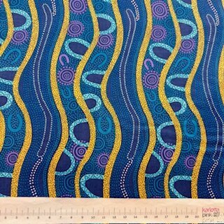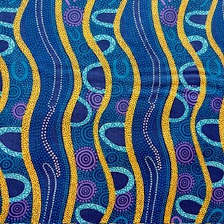 Gut fallende, hochwertige Baumwollstoffe mit traditionellen australischen Aborigini-Mustern. Sie eignen sich fŸr Kleidung aller Art, Accessoires, Innendekoration und Patchwork.