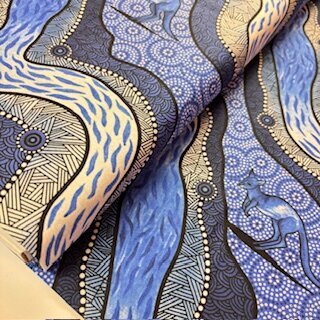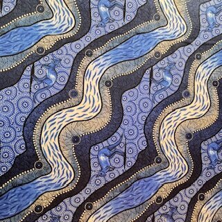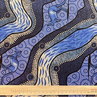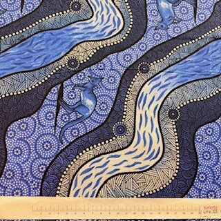 Gut fallende, hochwertige Baumwollstoffe mit traditionellen australischen Aborigini-Mustern. Sie eignen sich fŸr Kleidung aller Art, Accessoires, Innendekoration und Patchwork.