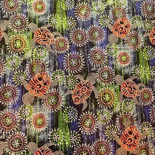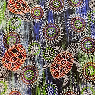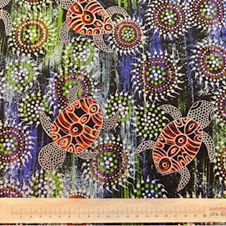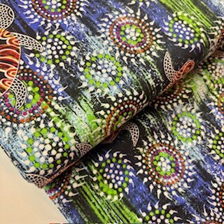 Gut fallende, hochwertige Baumwollstoffe mit traditionellen australischen Aborigini-Mustern. Sie eignen sich fŸr Kleidung aller Art, Accessoires, Innendekoration und Patchwork.