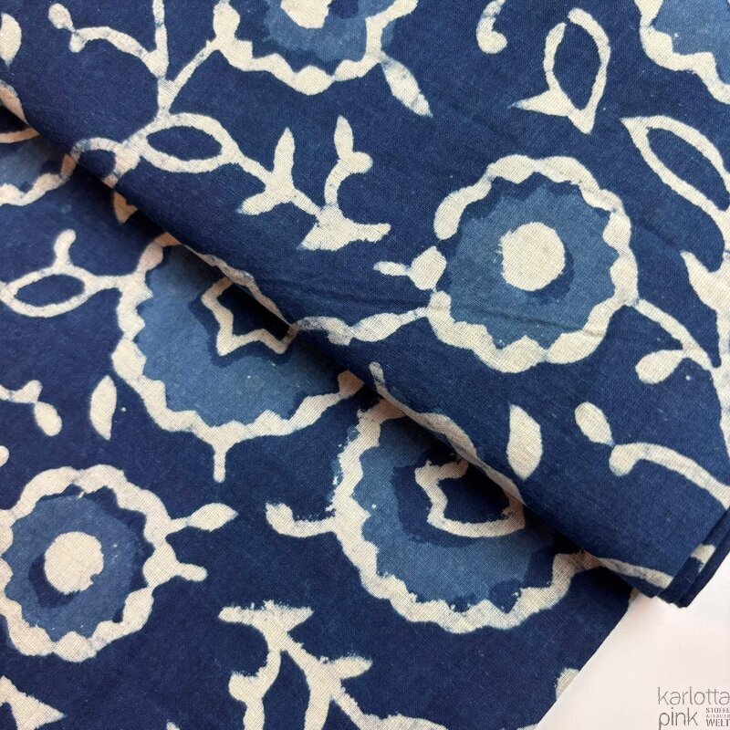 Mit Holzdruckstempeln bedruckt sind die handgefertigten Stoffe kleine Kunstwerke. Mehrfarbige Stoffe werden aufwändig in mehreren Durchgängen mit einem Set aus Positiv und Negativ-stempeln bedruckt. Die Herstellung der Holzdruckstöcke hat in Indien lange Tradition.
