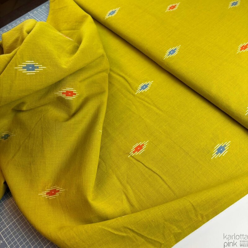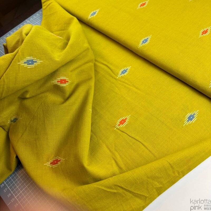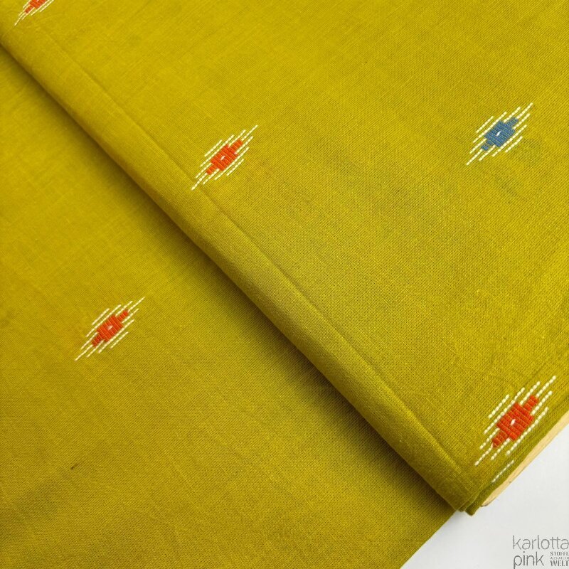 Unser indischer Jacquard ist ein gewebter Stoff aus 100 % Baumwolle aus Tamil Nadu, dem Süden Indiens.