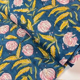 Die leichten Baumwollstoffe werden mit handgeschnitzten Holzstempeln gefertigt und sind eigentlich kleine Kunstwerke. Mehrfarbige Stoffe werden aufwändig in mehreren Durchgängen mit einem Set aus Postiv- und Negativstempeln bedruckt.